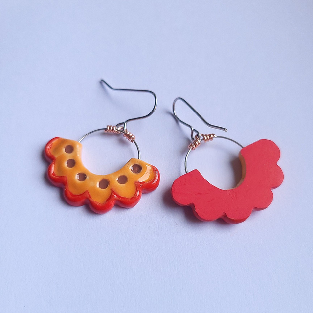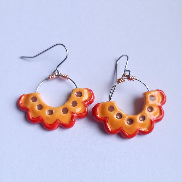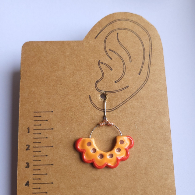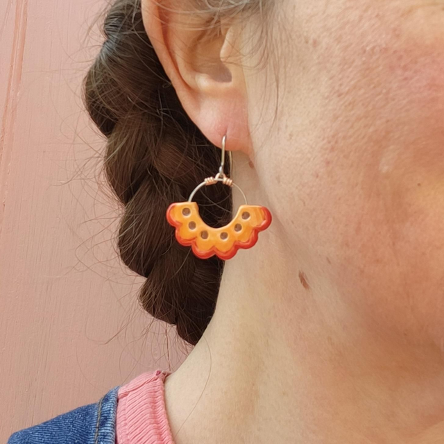 Flower Frill Drop Earrings - Orange/Red