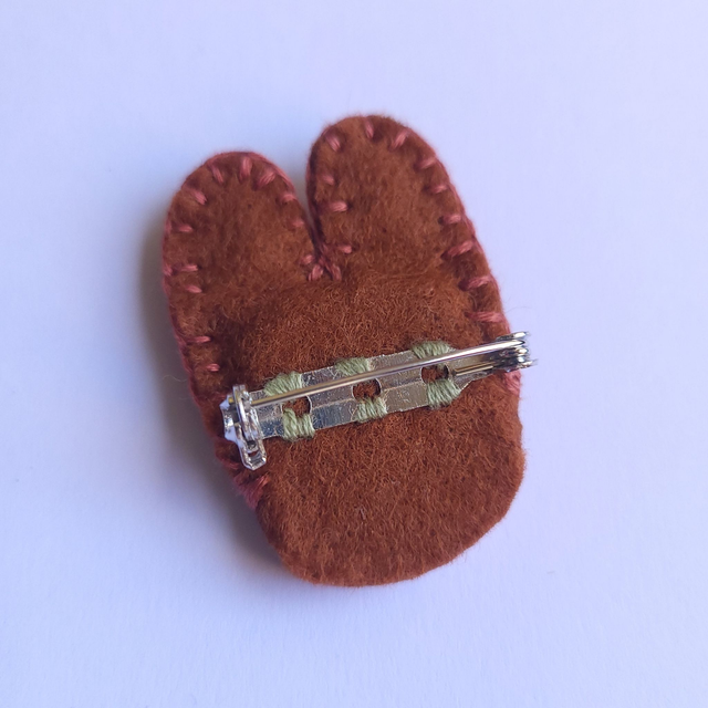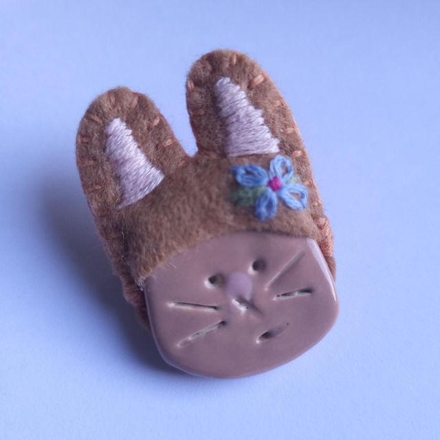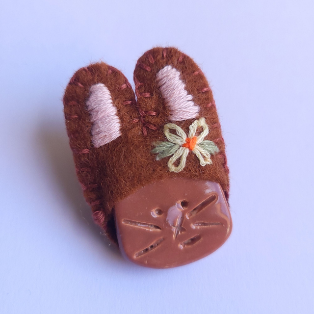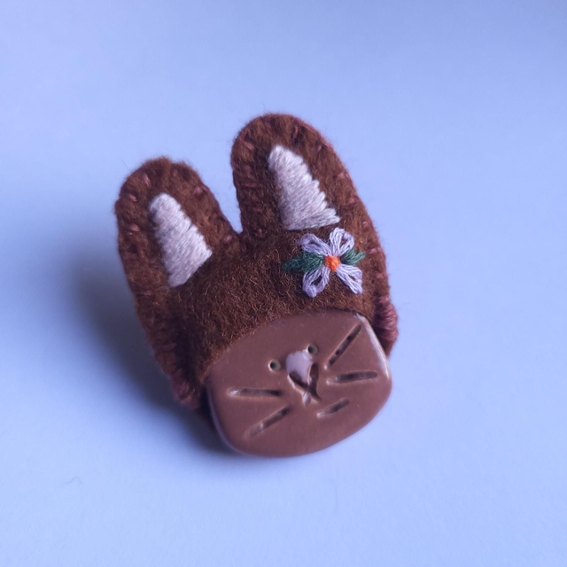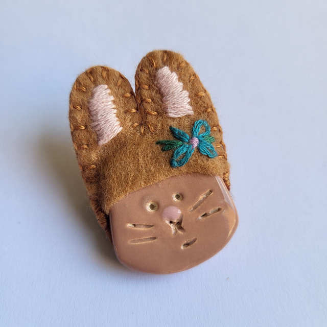 Happy Bunny Brooch - Ceramic and Embroidered Felt - Brown