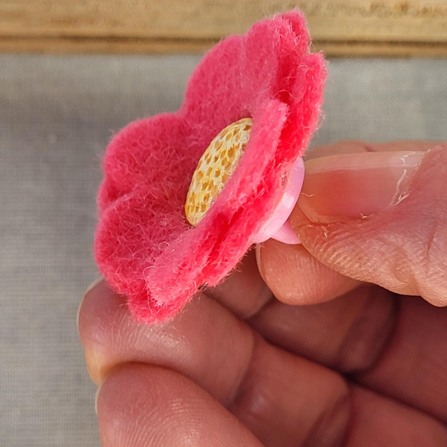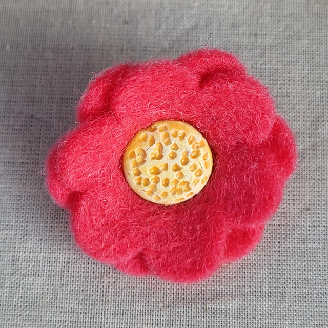 Dark pink "Spring Daisy" flower pin, felt petals with ceramic centre. Fitted with a badge pin and pretty pink, rubber pin badge back.