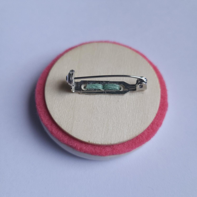 Take a little secret garden with you, with this delicately embroidered ceramic and wood brooch.